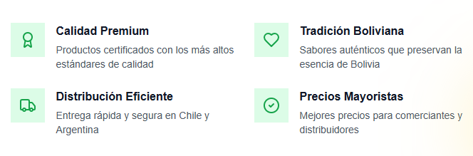 Somos una empresa dedicada a la distribución de productos alimenticios tradicionales bolivianos en Chile y Argentina, garantizamos la calidad y autenticidad de cada producto.